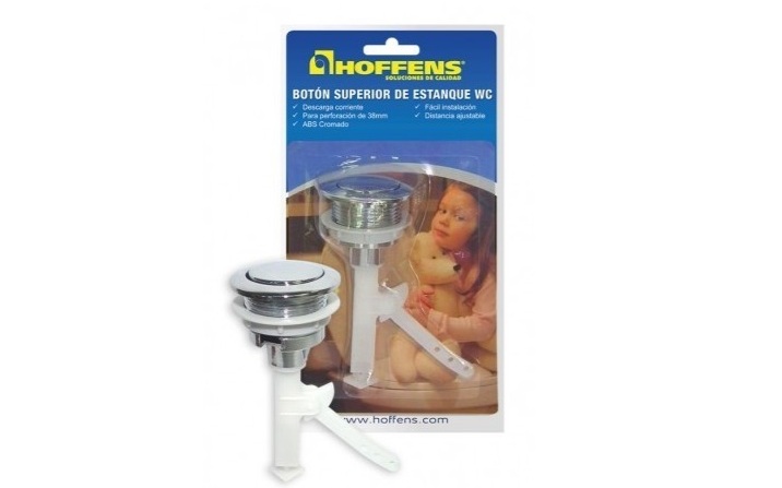 - Botón Superior Cromado Para WC - Para descarga tradicional - Para perforación estanque de 38 mm - Distancia ajustable