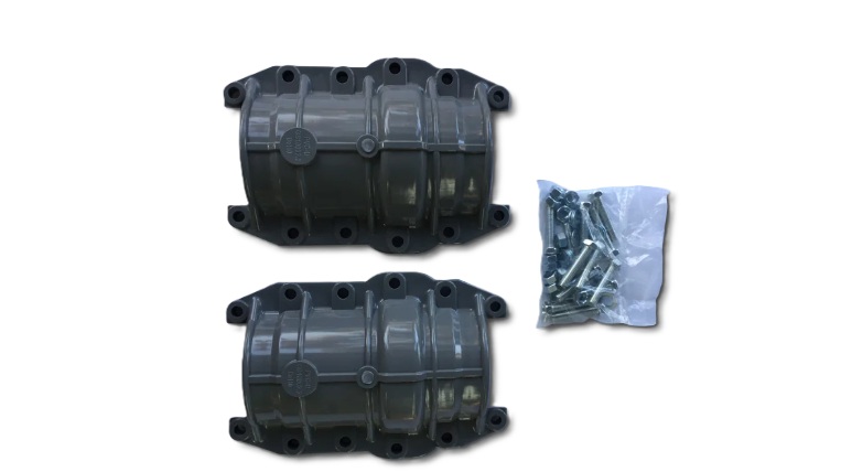 - Incluye 2 cuerpos de PVC, Kit de pernos galvanizados con tuercas y golillas y tapón de desagüe galvanizado