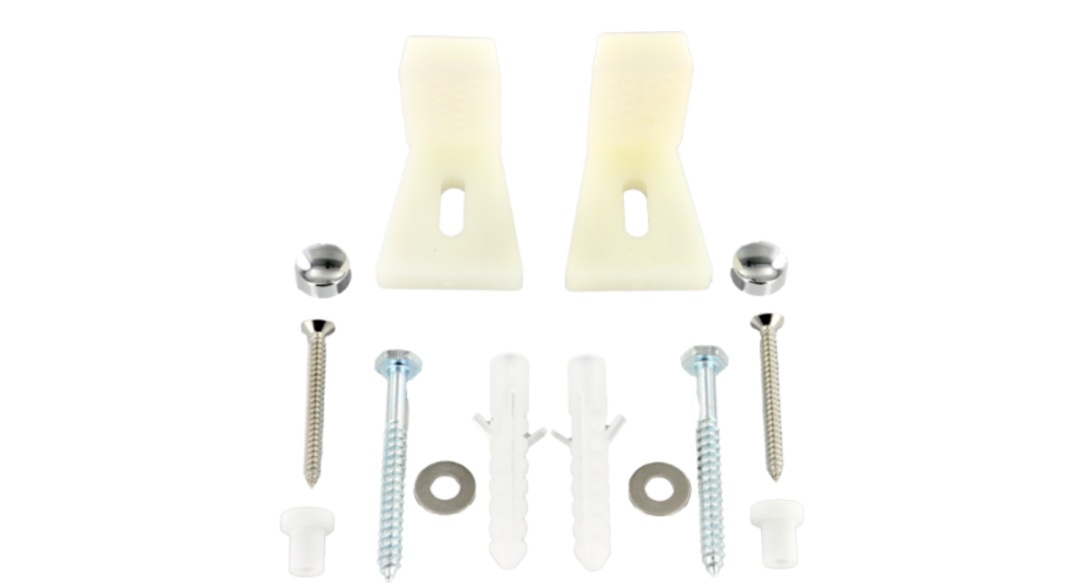 - Juego Anclaje Taza WC - Anclaje al piso para taza de wc y bidet con fijación lateral - Escuadras de nylon de posición regulable