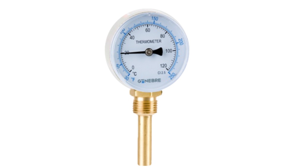 - Termómetro Bimetálico 63 mm Vaina Latón 50 mm Inferior