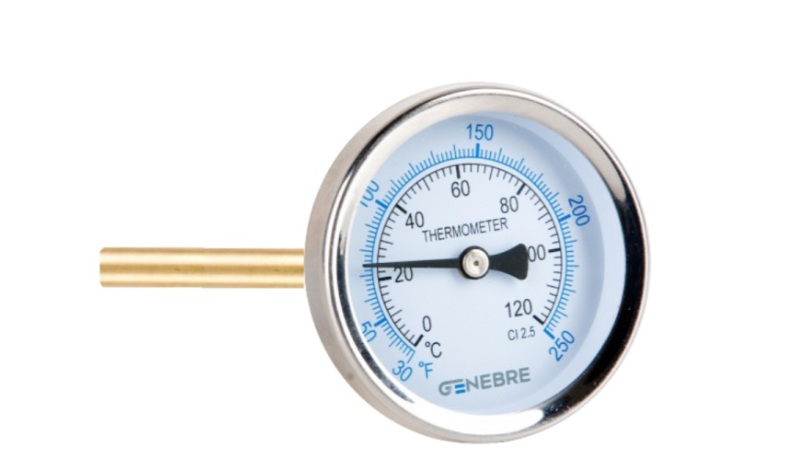 - Termómetro Bimetálico 63 mm Vaina Latón 100 mm Posterior